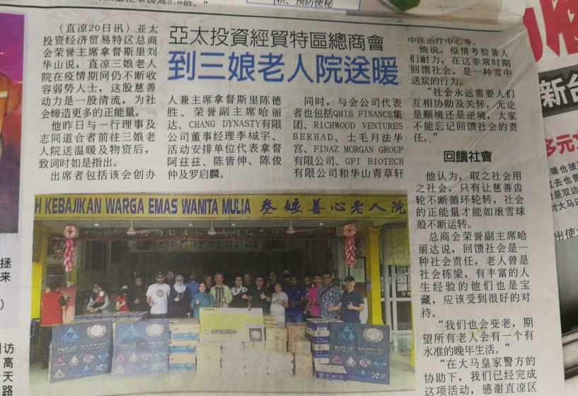 Majlis penyampaian sumbangan itu turut dihadiri Pengerusi Kehormat APCIA, Datuk Seri Lau Hua San dan Timbalan Presiden, Halidah Abdul Hamid.
